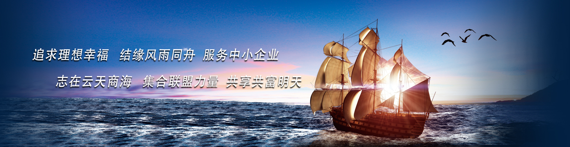 追求理想幸福 结缘风雨同舟 服务中小企业 志在云天商海 集合联盟力量 共享共富明天